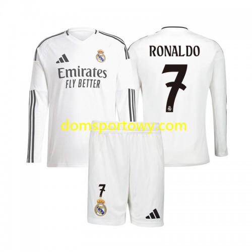 Koszulka Real Madryt Cristiano Ronaldo 7 Dziecięcy Domowe Koszulki Piłkarskie 2024-2025 Długi Rękaw