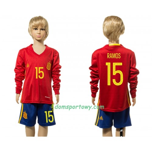 Koszulka Hiszpania Ramos 15 Dziecięcy Domowe Koszulki Piłkarskie 2016 Długi Rękaw