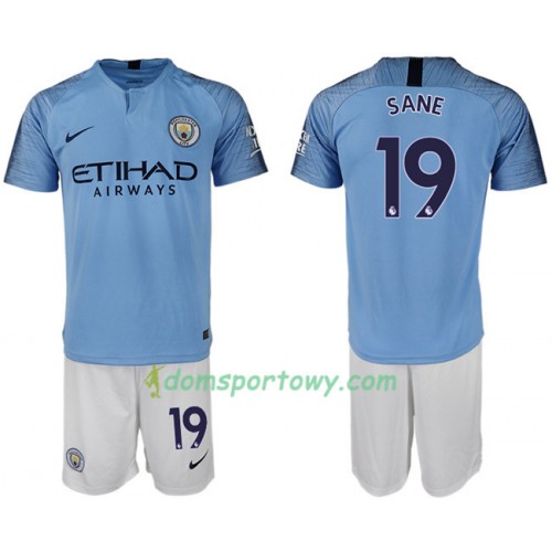 Koszulka Manchester City SANE 19 Dziecięcy Domowe Koszulki Piłkarskie 2018-2019 Krótki Rękaw